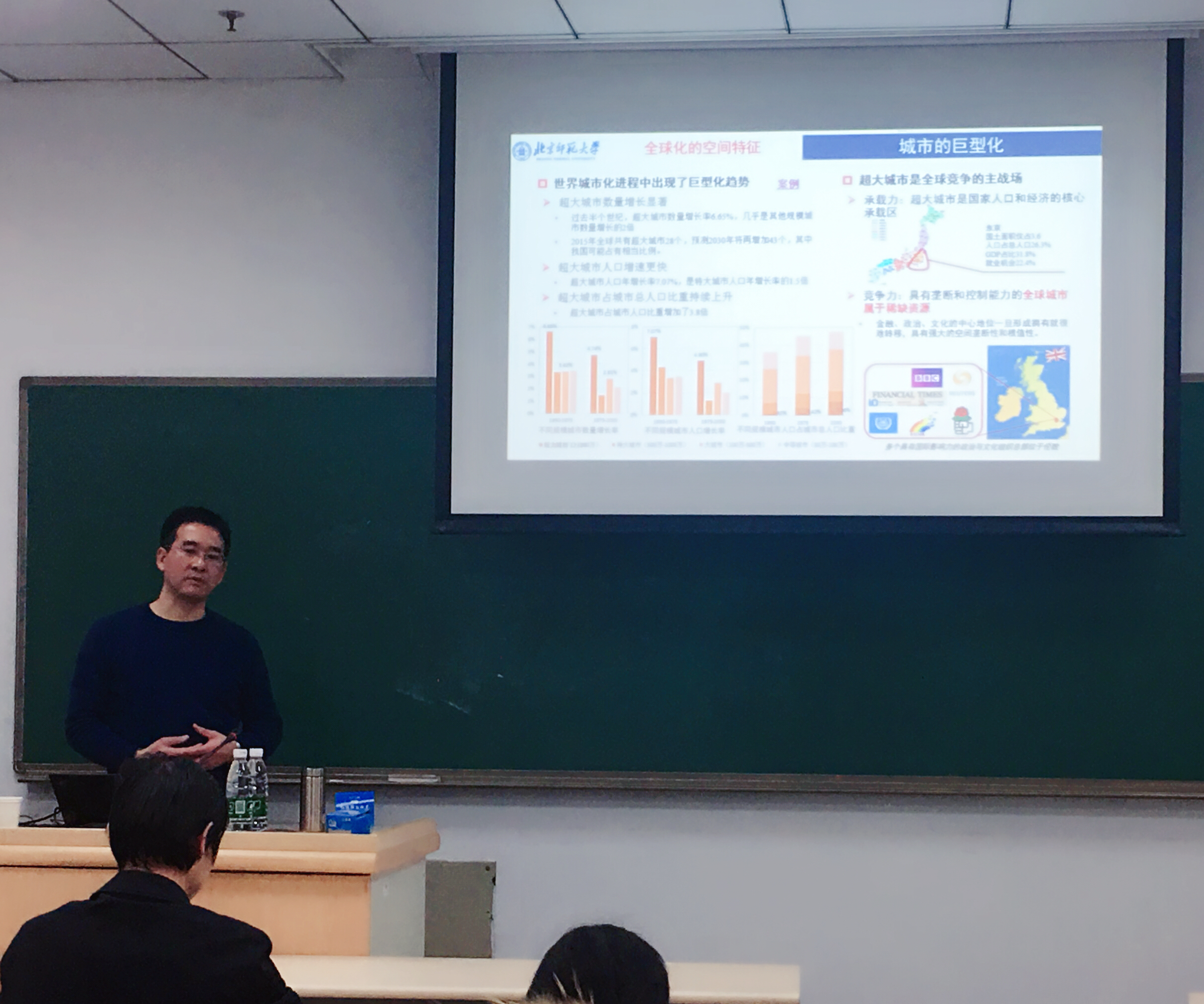 讲座伊始,黄老师对讲座内容进行了提纲挈领地表述,对全球化背景下的国土空间发展战略研究做了详细论述,图文详实,论证充分,理论和案例相结合,让同学们对于全球化对各国的国土空间布局和影响有了清晰且全面的认识。同时,黄老师就同学们感兴趣的北京规划、雄安规划、京津冀协同发展、多中心布局、规划与城市人口等问题与同学们展开了热烈讨论。