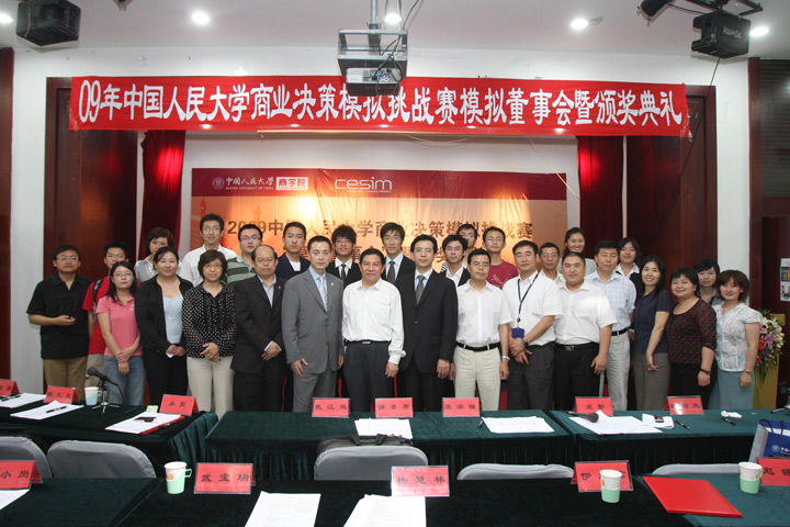 2009年5月27日晚6点至8点30分,中国人民大学第一届商业决策模拟挑战赛模拟董事会暨颁奖典礼在贤进楼一层多功能厅成功举行。中国人民大学副校长杨慧林教授,经济与管理实验教学中心专家指导委员会副主任、实验室建设与设备管理处处长武宝瑞教授,网上博彩网站大全 院长伊志宏教授,实验室建设与设备管理处副处长张小岗副教授,网上博彩网站大全 副书记赵锦兰老师等领导出席了颁奖典礼。