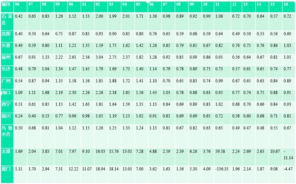 1996年-2016年12个城市存在严重或轻微的住房泡沫,包括石家庄、沈阳、长春、福州、长沙、广州、海口、西宁、银川、乌鲁木齐、太原和厦门。其中厦门和太原仅仅是2016年才出现住房泡沫。而两个城市没有明显的泡沫,一是北京,二是天津。如果按房价收入比的话,会得到北京其实存在住房泡沫的结果。但限购、限贷、限售、限价抑制了北京的住房泡沫。房价被低估的有21个城市(2012年之后)包括呼和浩特、郑