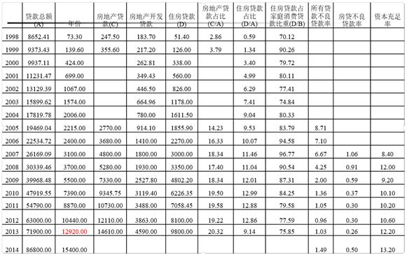 1998-2014年房地产贷款情况