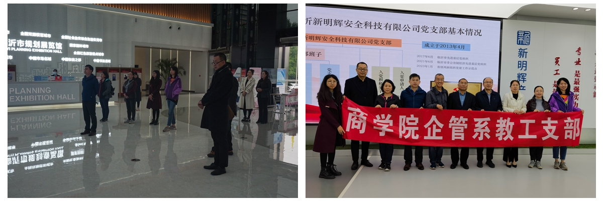 4月23日上午,企管系党支部参观了临沂市规划展览馆。临沂市规划展览馆是临沂市文化地标性建筑, 2015年被评定为“具有影响力的城市规划模型”,在全国地级市规划展览馆中位列首位。参访教师通过了解城市规划布局和落地成效,深刻认识到临沂市之所以成为中国物流之都,经济社会各方面都有好的发展,得益于城市规划。随后,企管系教师参访临沂物流园区的明星企业——新明辉安全科技有限公司,并与新明辉安全科技有限公司党支部开展支部联学。公司创始人总经理李辉介绍了公司发展历程,作为中国最大的经营劳动保护产品的电商平台,双方就将新明辉公司纳入人大网上博彩网站大全 候选案例计划达成了初步合作意向。