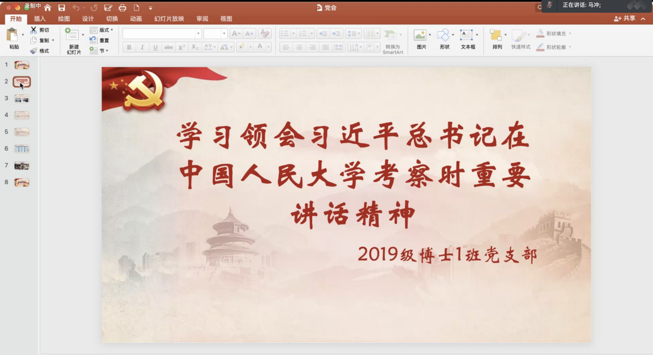 本科生第八党支部学习习近平总书记考察中国人民大学重要讲话精神