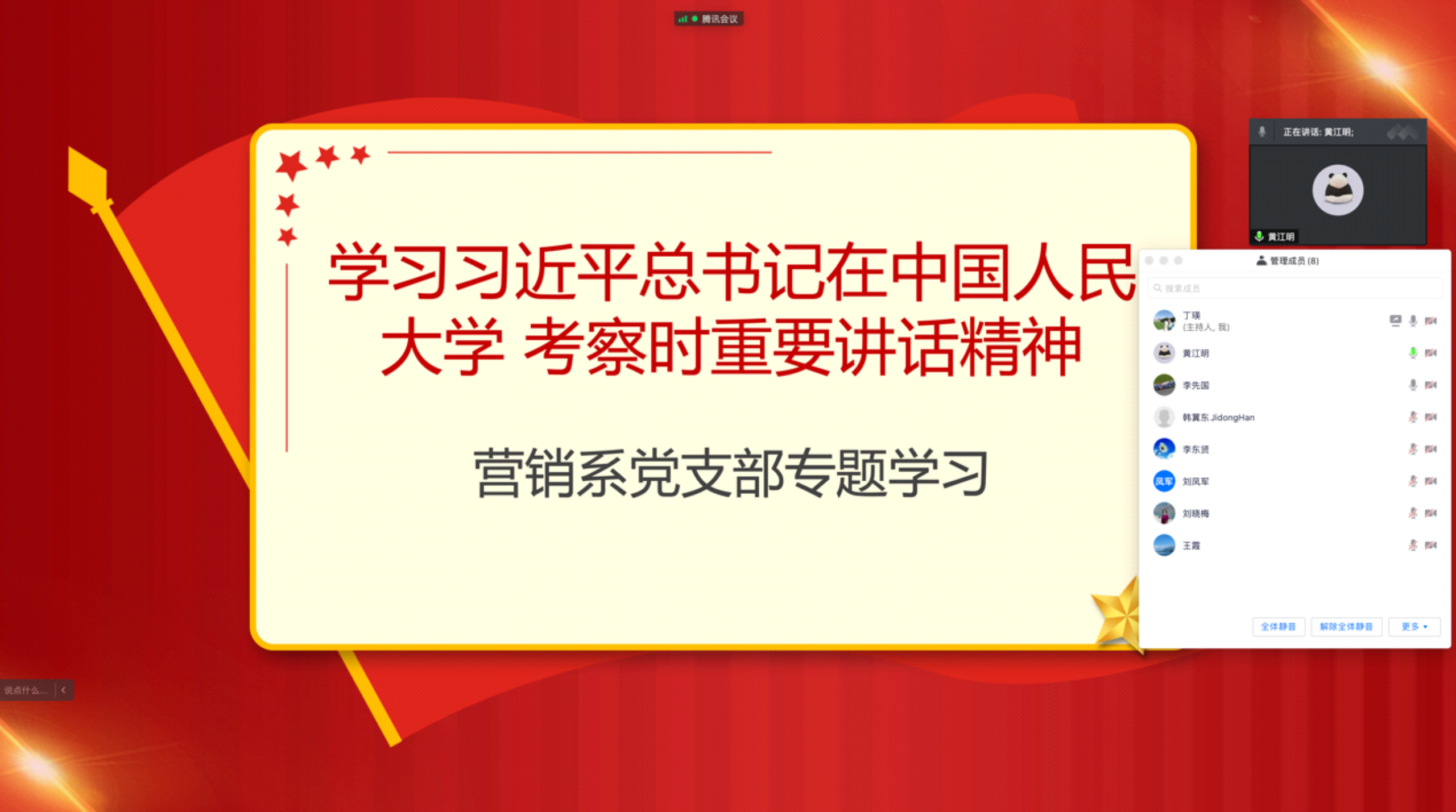 市场营销系党支部在腾讯会议在线召开学习习近平总书记考察中国人民大学重要讲话精神的主题党日活动。会议由营销系党支部书记丁瑛主持,全体党员参加。首先,网上博彩网站大全