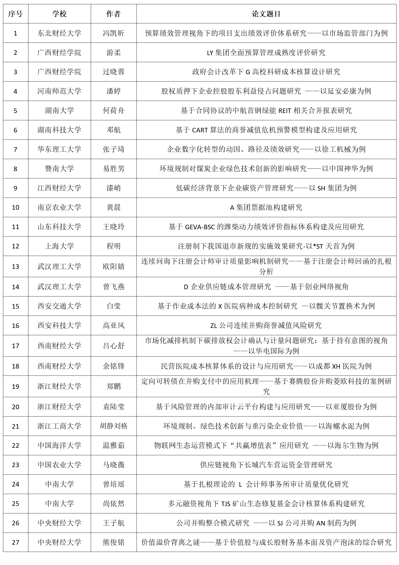 2022年MPAcc优秀学位论文获奖名单(排名不分先后)