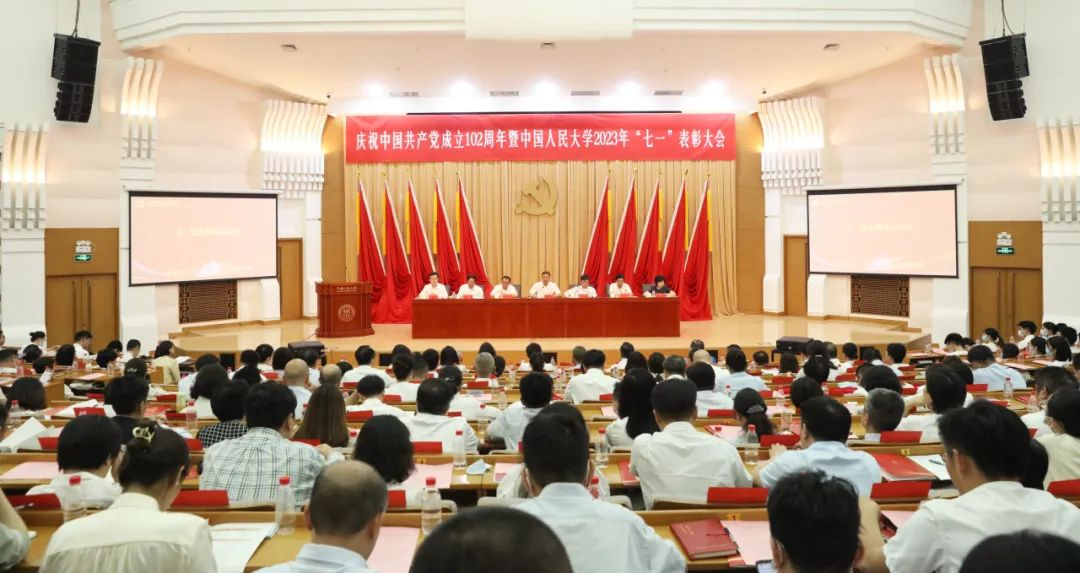 6月30日,中国人民大学庆祝中国共产党成立102周年暨“七一”表彰大会举办。在全校上下深入开展学习贯彻习近平新时代中国特色社会主义思想主题教育之际,“七一”前夕,中国人民大学隆重庆祝党的生日,对过去两年学校基层党建工作进行检阅和巡礼,同时也对进一步加强学校党的领导和党的建设进行动员和部署,着力在新的征程上以高质量党建引领学校各项事业实现高质量发展。