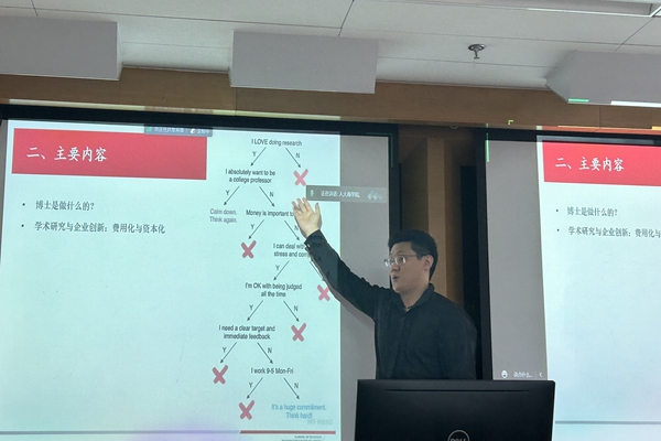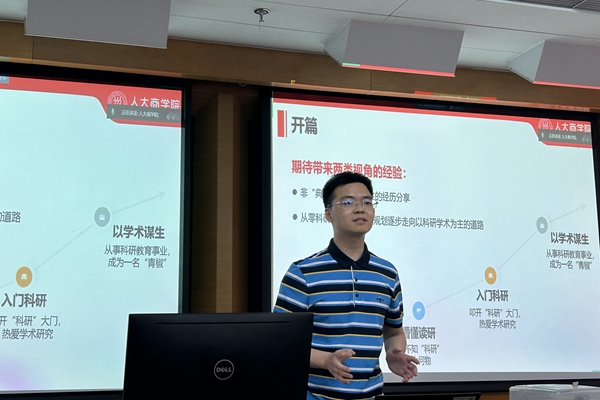 三位博士生从自身的学习体会出发,介绍了人大网上博彩网站大全 的资源平台情况,比如学系双周学术讲座、A刊闭门工作坊、博士生学术论坛、海外教授面对面等活动,重点讲解了硕博项目的课程训练体系、科研锻炼提升收获、海外联合培养支持、企业调研实践机会,以及攻读博士学位过程中遇到的困难和解决方式。三位博士生都提到,学术研究需要严格的训练,从选定研究方向、提出研究问题、掌握研究方法,到最后撰写论文成果并获得发表,需要足够的耐心和持续的毅力,是一个守得云开见月明的过程。在有挑战性的博士学习过程中,也有丰富的机会开展国内外交流,既能开拓学术视野,又能提升个人综合能力。三位博士生对于人大网上博彩网站大全 一直秉承“扎根中华大地做研究”的理念深感认同,通过扎实的理论基础学习,再面向世界进行探索交流,才能更好地推进自主知识体系的实现,博士生在这个过程中也做出了重要的贡献与力量。