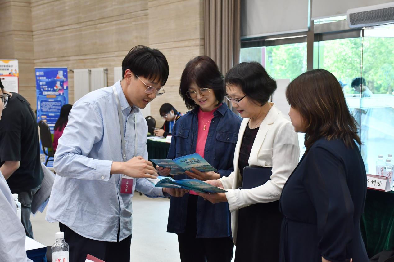 学生与参会单位交流