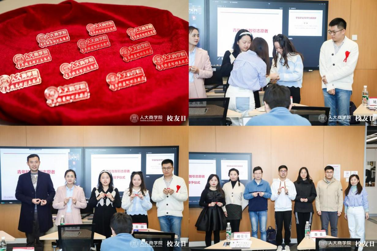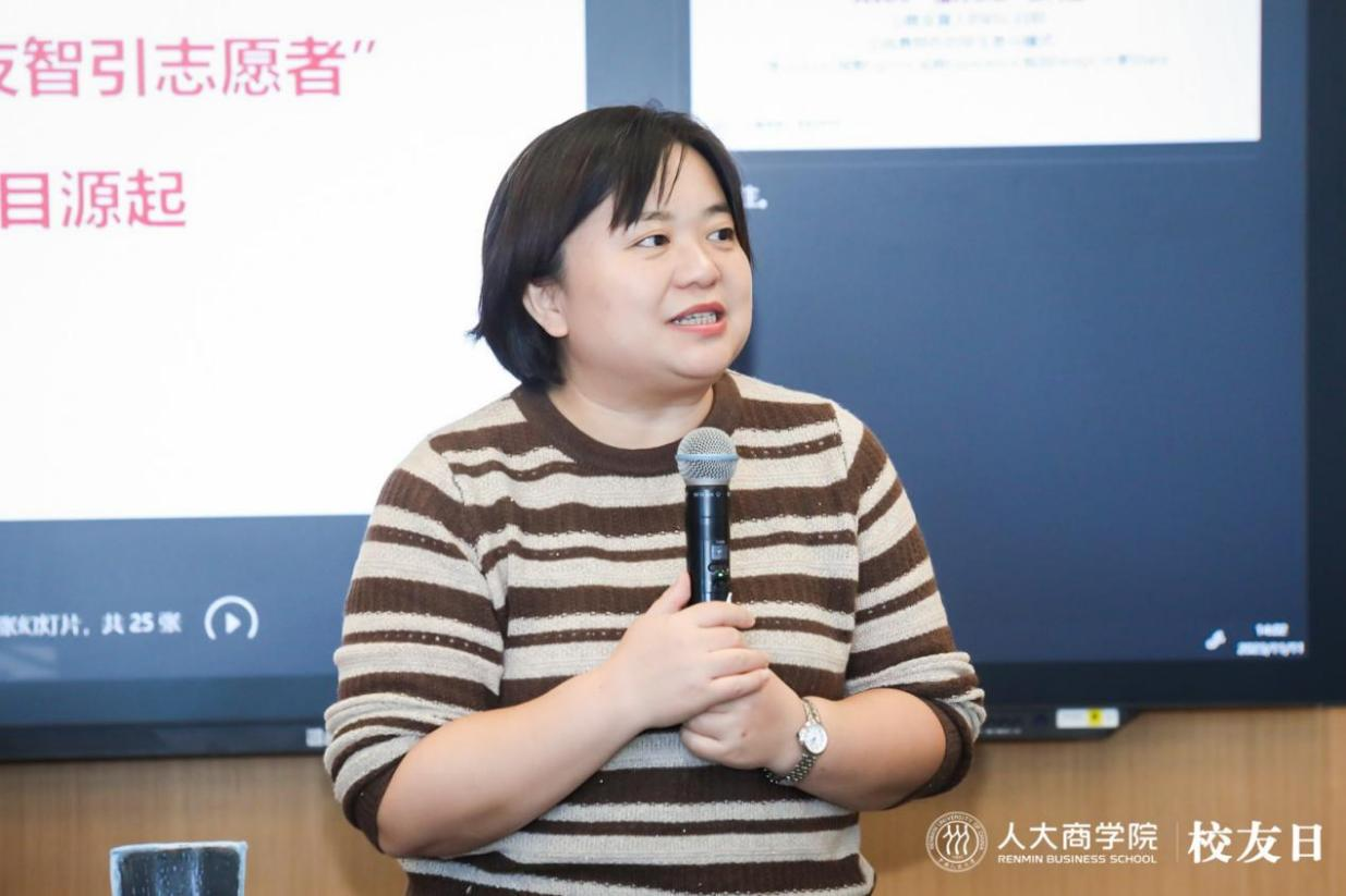 学生就业创业教育工作团队的前辈,结合自身指导学生、开展职业发展与就业创业工作的经验,分享了对“青年校友智引志愿者”项目核心的理解:“青年校友”对应感恩、“智引”对应智慧传承、“志愿者”对应奉献。他认为青年校友可通过本项目实现三个感知:感知学校、感知青年、感知自己。他表示,相信通过校友们的共同努力,一定可以把人大商院学子打造成“金字品牌”。
