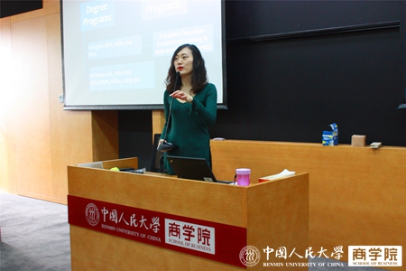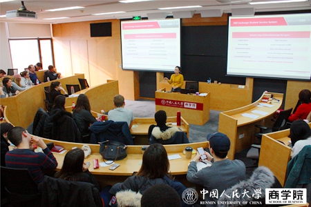 迎新会于下午2点正式开始,徐帆老师首先对交换生们表示了欢迎,并介绍了中国人民大学的校内外环境和学校设施服务等基本情况。她为交换生们推荐了中国的一些著名旅游城市,建议他们在交换期间拜访中国的不同城市,增进对中国文化的了解。