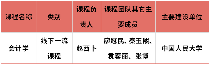 近日,教育部高等教育司发布《关于第二批国家级一流本科课程认定结果的公示》,中国人民大学总计27门本科课程入选。其中,网上博彩网站大全 赵西卜、廖冠民、秦玉熙、袁蓉丽、张博五位老师负责的《会计学》课程入选为国家级线下一流课程。