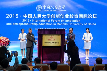 随后,洪大用副校长与瀚海基金会董事长王汉光董事长共同为“中国人民大学海外创业实训孵化基地”揭牌。