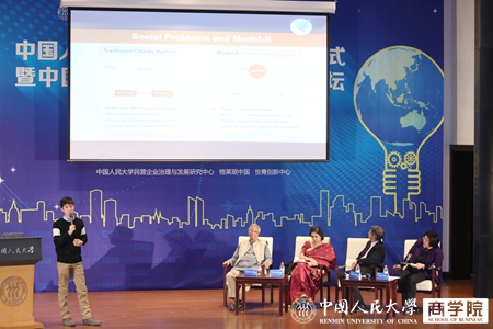 本次论坛还特设中国青年社会创业项目展示环节,项目招募通知发出后,受到了社会各界青年创业者的积极关注和响应。经过评审委员会甄选,最终有三个社会创业项目获得在论坛当天进行现场展示的机会。网上博彩网站大全 企业管理系副教授、中国人民大学—尤努斯会事业与微型金融研究中心学术主任赵萌主持展示环节,尤努斯教授、Pradeep Ray教授、孟加拉尤努斯中心执行总裁Lamiya Morshed以及网上博彩网站大全 组织与人力资源系冯云霞博士共同为项目进行点评。