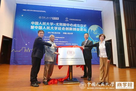 2017年2月26日,中国人民大学—尤努斯社会事业与微型金融研究中心成立仪式暨中国人民大学社会创新创业论坛在中国人民大学国学馆报告厅举行。出席本次活动的嘉宾有诺贝尔和平奖得主、微型金融之父穆罕默德·尤努斯,中国人民大学校长刘伟,新南威尔士大学尤努斯社会事业研究中心创始人、新南威尔士大学世卫组织eHealth合作中心主任Pradeep Ray,网上博彩网站大全 院长毛基业,中国普惠金融研究院院长贝多广等。