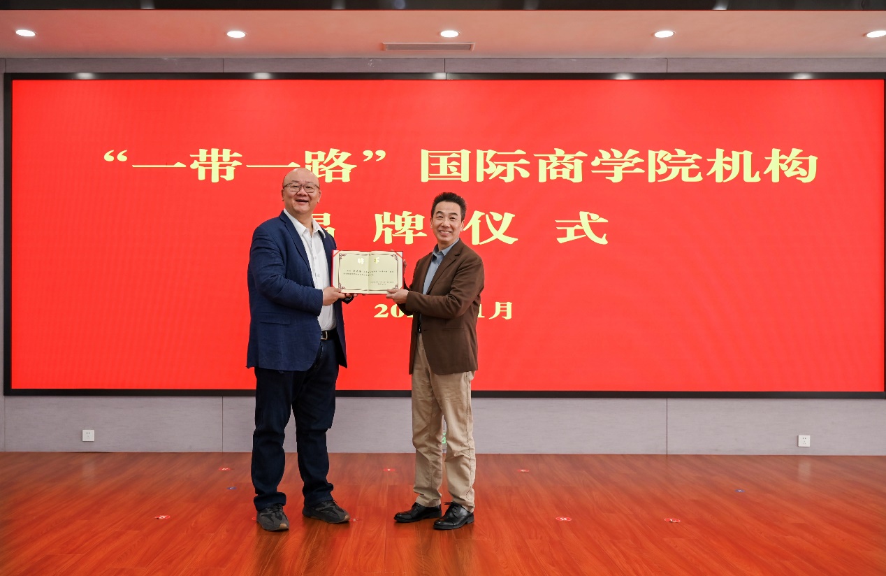 宋大我与易靖韬共同为“国际经贸新秩序研究中心(世界一流企业研究院(义乌))”“跨境营销研究中心(世界一流企业研究院(义乌))”揭牌。