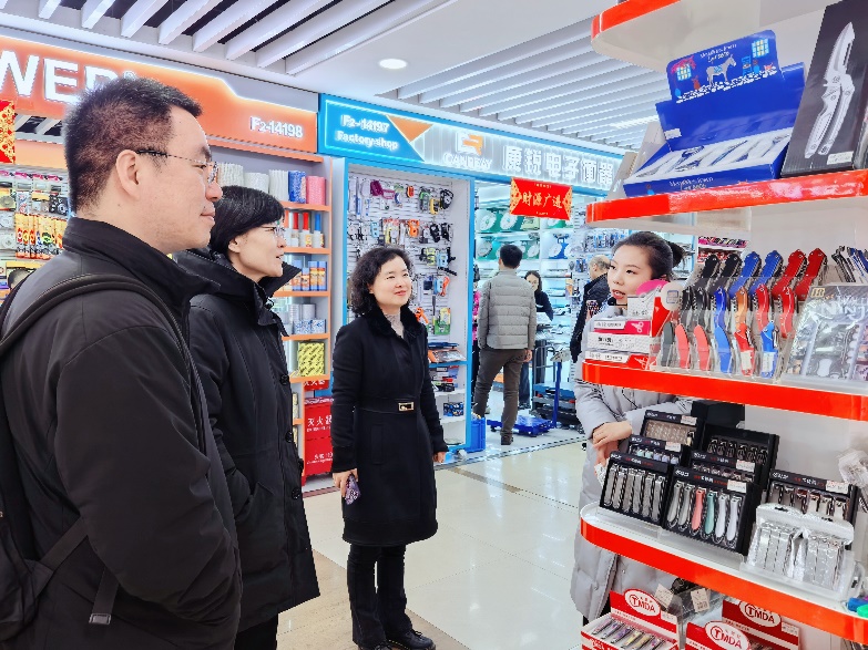 随后,调研团队前往义乌商品城进行调研,深入了解商品城内的各类特色商品贸易情况,重点关注商户经营情况,以及经营户在品牌推广、物流配送等方面的挑战。