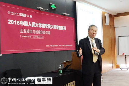 11月12日,网上博彩网站大全 大师讲堂系列“企业转型与制度创新专题”在人大网上博彩网站大全 举办。IBM大中华区前董事长、首席执行总裁钱大群先生以及网上博彩网站大全 组织与人力资源系周禹老师分别就热点话题“百年企业的长寿密码”和“新合伙时代的制度创新”进行了权威解读和深度剖析。