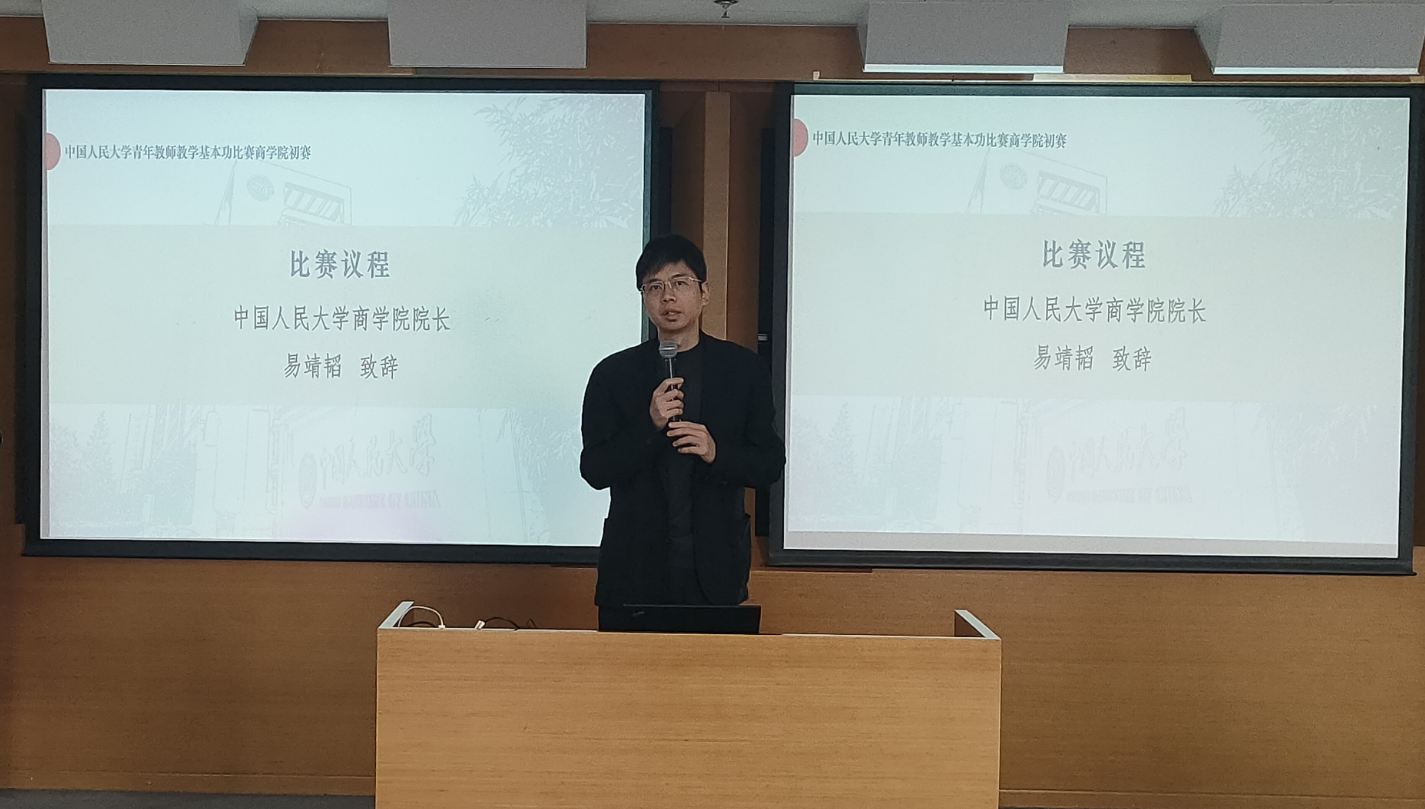 为深入贯彻党的二十届三中全会精神和全国教育大会精神,培养新时代高水平教师队伍,进一步提升青年教师教学能力,网上博彩网站大全 于10月25日举办中国人民大学第十三届青年教师教学基本功比赛网上博彩网站大全 初赛。网上博彩网站大全 院长易靖韬、副院长赵晶出席,多位资深教师参与比赛评审和点评。