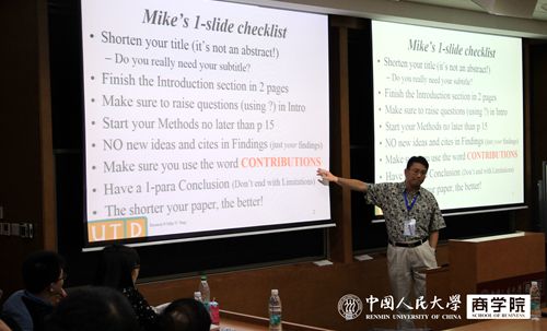 本次研讨会设立了包括组织行为学、人力资源管理、战略管理、会计、财务、营销、管理信息系统、银行与互联网金融等方面的15个分会场。来自中国内地、香港、台湾、加拿大、美国、澳大利亚、新加坡、韩国、日本、巴基斯坦等52篇论文的作者宣讲了论文。德克萨斯大学达拉斯分校的Mike Peng 教授主持了“学术文章发表背后的秘密”的工作坊,与参会者分享了其丰富的学术研究发表经验,总结了学术研究中需注意的问题,并提出了提高学术文章发表概率的可行性建议。