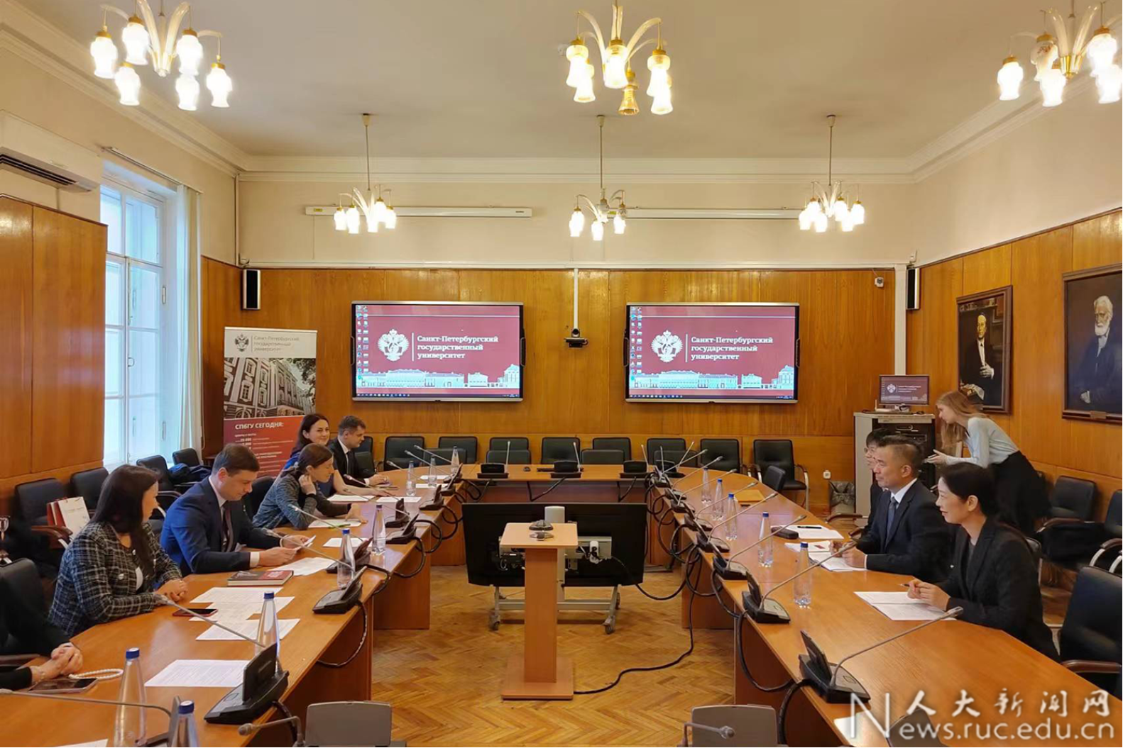 为深入拓展学校与俄罗斯高校合作,助力学校建构中国自主的知识体系,走好建设中国特色、世界一流大学新路,促进中俄两国人文交流与教育合作,为完善“一带一路”国际合作机制,推动新时代中俄全面战略协作伙伴关系高水平运行作出贡献,中国人民大学党委常委、副校长郑新业于2023年10月30日至11月3日率团出访俄罗斯。访俄期间,代表团先后访问了俄罗斯高等经济研究大学、俄罗斯联邦储蓄银行、莫斯科国立大学、圣彼得堡国立大学,并赴中共六大会址常设展览馆参观学习,拜访了中国驻圣彼得堡总领事馆。