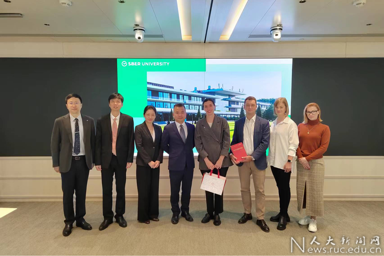 10月31日中午,代表团前往俄罗斯联邦储蓄银行访问。俄罗斯联邦储蓄银行大学执行主任奥西楚克·娜塔莉娅(Osipchuk Natalia)会见了代表团一行。娜塔莉娅表示,俄罗斯联邦储蓄银行大学每年为其客户提供大量的培训项目,范围涵盖金融、基础设施、数字经济、人工智能等多领域,培育了大批高级管理人才。中国人民大学在工商管理、经济、法律等领域在中国享有盛誉。希望双方以此次访问为起点,加强为两国企业培训方面的合作,为双方更深入地了解两国的发展和商业模式搭建平台。
