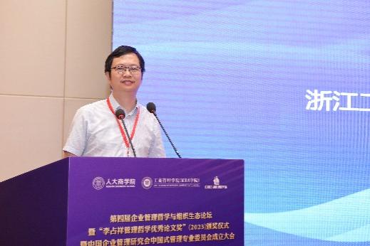 7月29日-7月30日,第四届企业管理哲学与组织生态论坛暨“李占祥管理哲学优秀论文奖”(2023)颁奖仪式暨中国企业管理研究会中国式管理专业委员会成立大会在杭州举行。