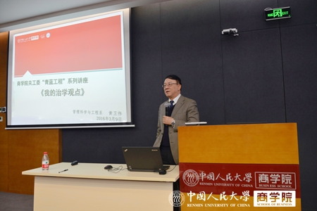 2016年3月9日下午,网上博彩网站大全 关工委“青蓝工程——老专家学术领航”系列讲座在汇贤大厦C座307报告厅举办。网上博彩网站大全 院长毛基业教授主持讲座,管理科学与工程系退休教授黄卫伟围绕《我的治学观念》做主题报告,网上博彩网站大全 全体教师参加讲座。