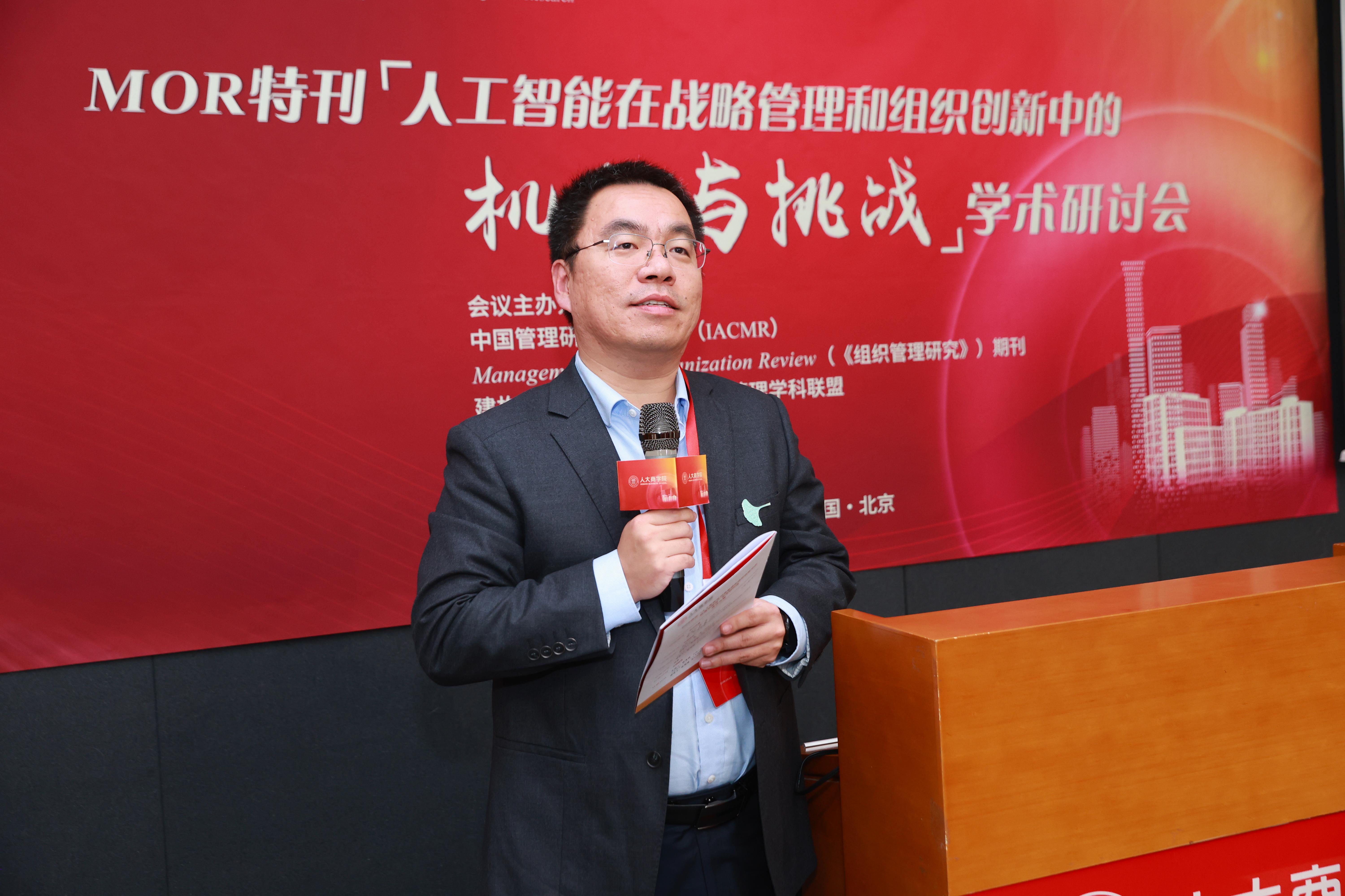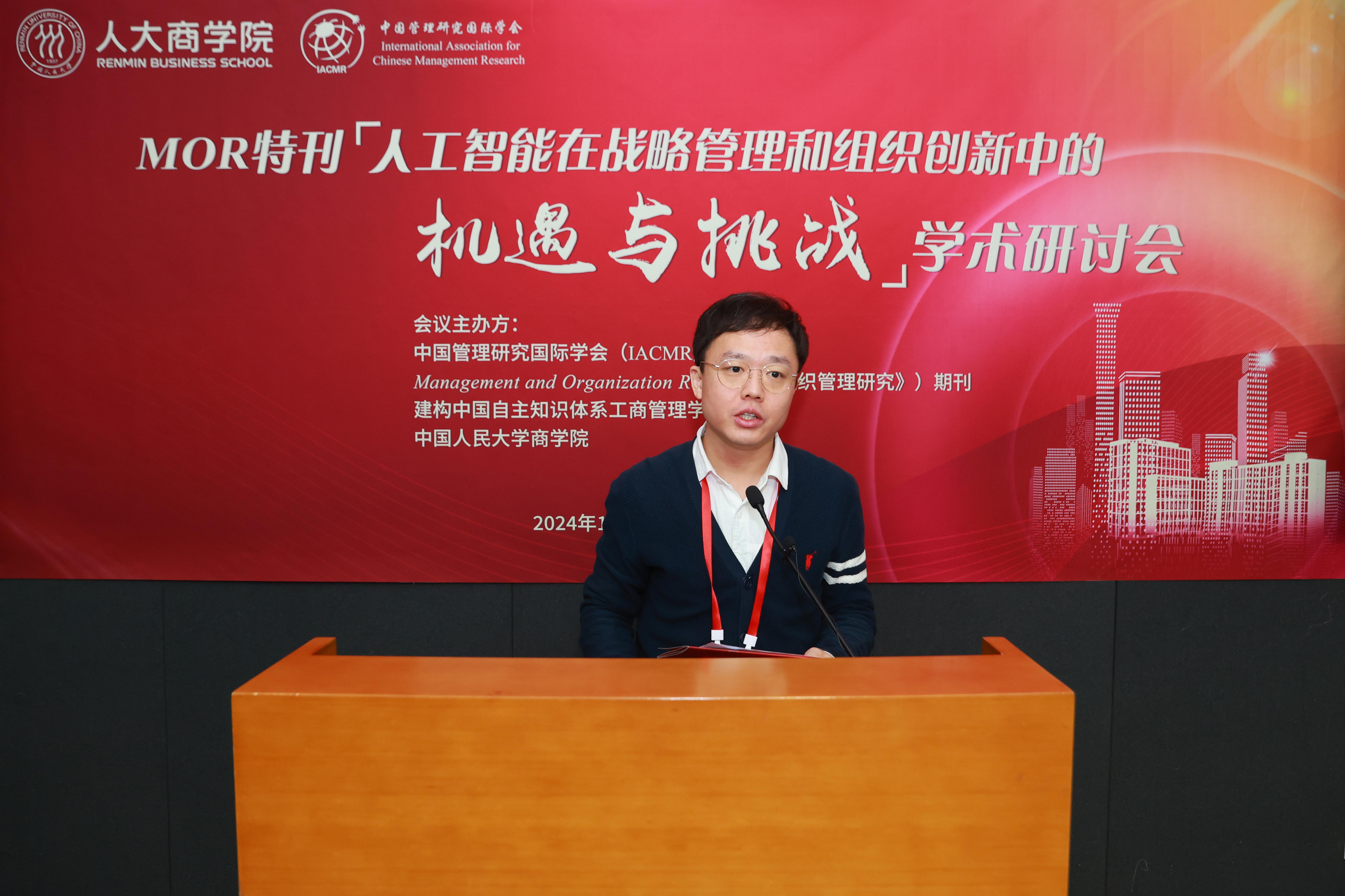为持续深入贯彻习近平总书记在中国人民大学考察调研时重要讲话精神,加快探索中国自主工商管理知识体系,共同推动工商管理学的知识创新、理论创新、方法创新,更好地促进国内学者发展本土理论、探索中国情境下的管理现象和研究问题,10月26日,Management and Organization Review(《组织管理研究》)特刊“人工智能在战略管理和组织创新中的机遇与挑战”学术研讨会在中国人民大学汇贤大厦报告厅举行。本次研讨会由中国管理研究国际学会(IACMR)和网上博彩网站大全 联合主办,来自80余所院校的180多名专家学者参会。