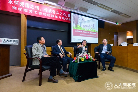 2018年11月26日下午,以“永怀爱国之情,传承奋斗之心,建功立业新时代”为主题的网上博彩网站大全 关工委纪念改革开放40周年特别论坛在明德商学楼604教室召开。中国人民大学副校长朱信凯、学校办公室主任顾涛、离退休工作处处长、校关工委副主任纪红波、学生工作部副部长邓晖、校团委副书记金霞出席,组织与人力资源系杨杜教授、市场营销系陈冠教授、会计系王化成教授三位对话嘉宾参与论坛互动。此外,网上博彩网站大全 党委副书记、关工委主任赵锦兰、副主任田威、网上博彩网站大全 各学系主任、党支部书记、各教学项目及行政部门代表和各教学项目学生代表一并参会。论坛由网上博彩网站大全 党委书记黄江明主持。