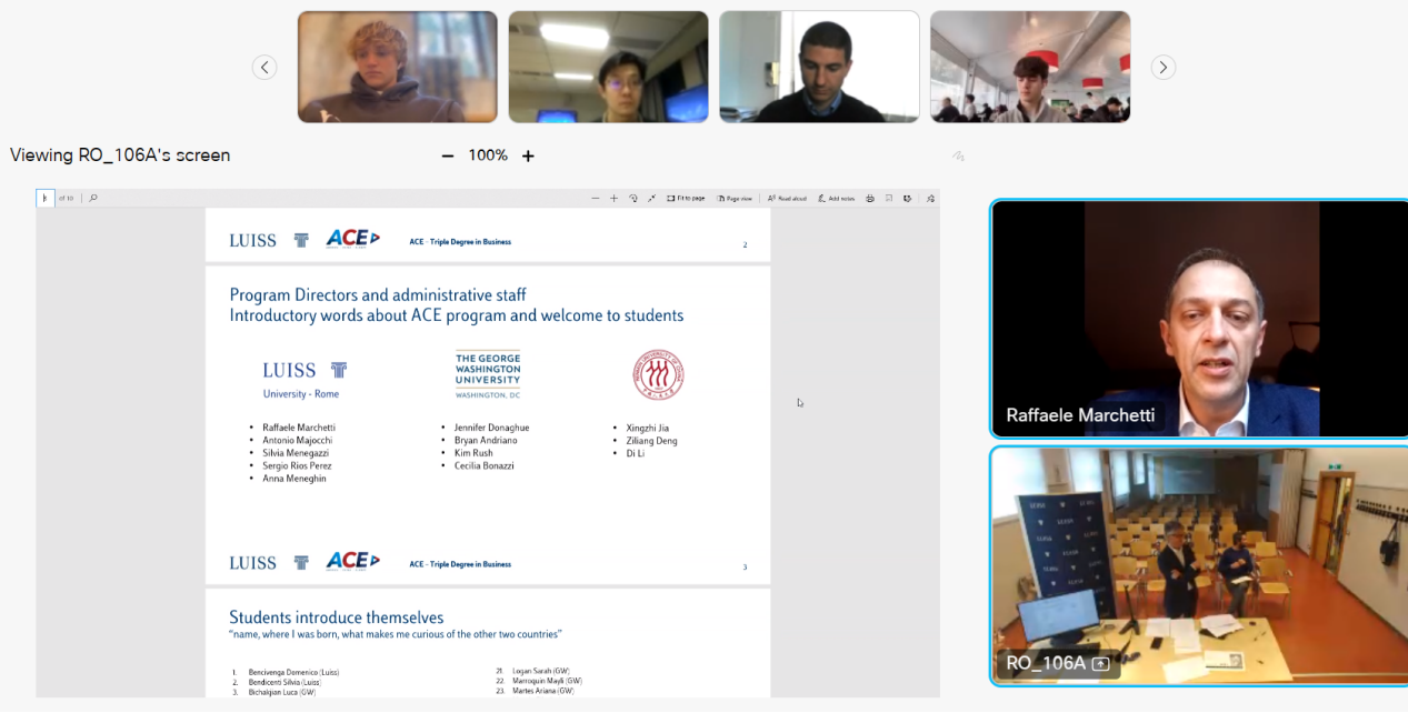 4月20日,中意美三学位管理学本科项目三校师生首次见面会线上举行。意大利路易斯大学副校长拉斐尔·马尔凯蒂(Raffaele Marchetti),工商管理本科项目主任安东尼奥·马乔奇(Antonio Majocchi),美国乔治·华盛顿大学教务长助理詹妮弗·唐纳胡(Jennifer Donaghue),网上博彩网站大全 院长助理布莱恩·安德里亚诺(Bryan Andriano),网上博彩网站大全 副院长邓子梁,三学位项目主任贾行之,三校项目相关负责老师,以及2022级首批41名学生出席了线上会议。会议由意大利路易斯大学安东尼奥·马乔奇主持。