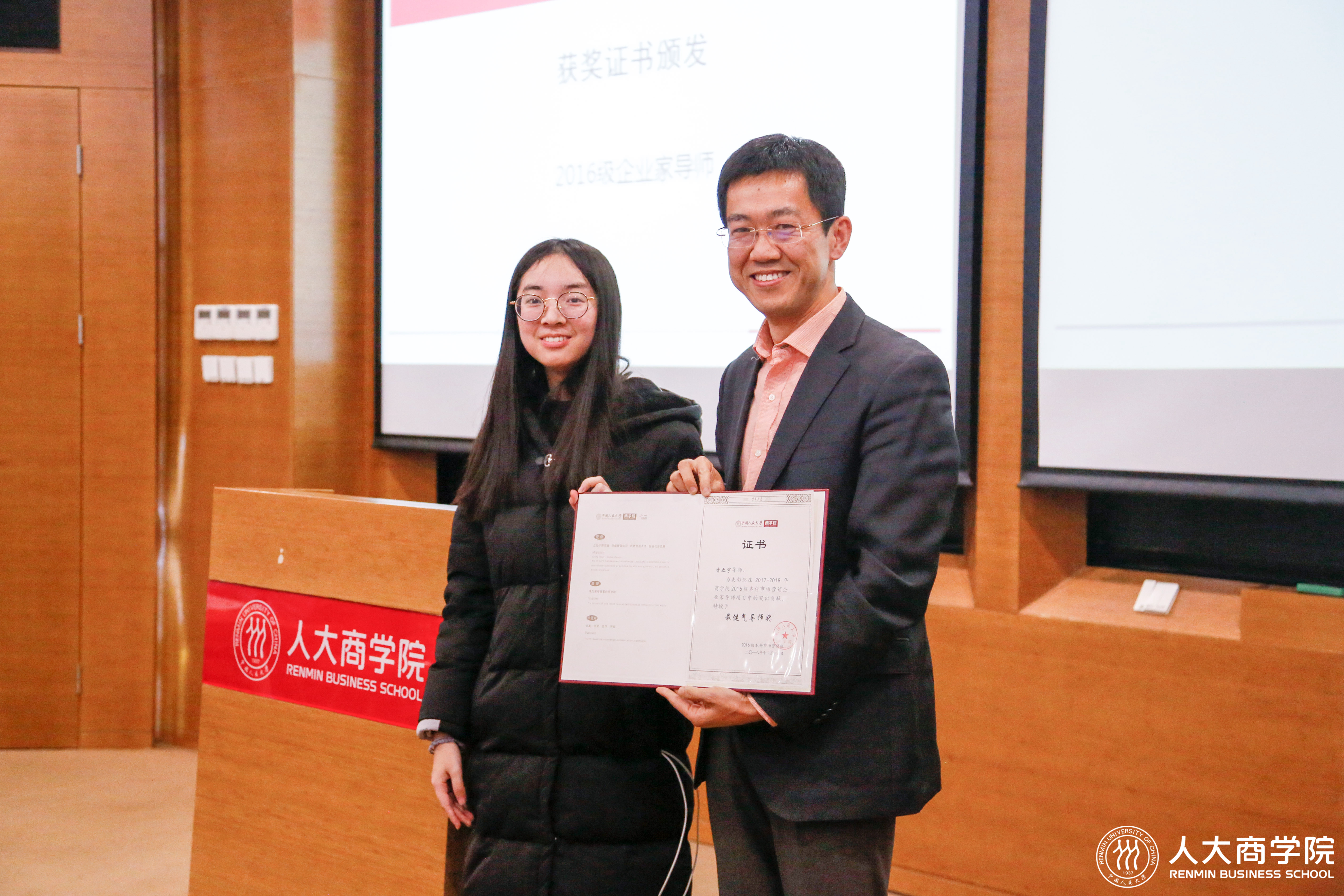 2016级学生为企业导师颁发荣誉证书