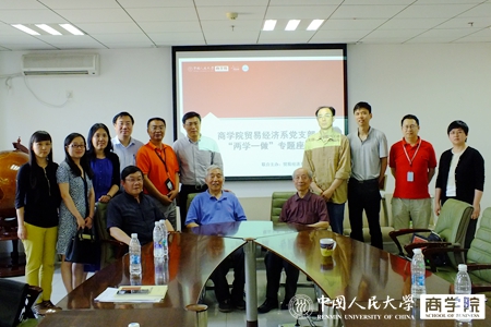 专题讨论环节,陈甬军教授首先谈到,做学问首先要坚持正确的政治思想方向;系主任王晓东教授认为共产党员教师应严于律己,同时要对年轻教师进行培养、关爱学生;王亚星教授认为学者首先要是一个立场坚定的人,要相信党、热爱国家,做到公私分明,私人不占用公家资源,做学问要触类旁通,知识面要宽、要厚;易靖韬副教授认为本系要构建好本土理论,要立足中国本土,解决自身问题;徐佳宾老师再次强调了贸经系目前面临的是如何传承的问题,如何将老一辈的优秀品质和培养人的方式传承下来,一定需要良好的沟通。