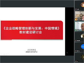企业管理系举办“课程思政教育教学探索与实践”专题研讨会。本次研讨会围绕中国人民大学“中国管理学”系列教材中的《企业战略管理创新与发展:中国情境》展开进一步论证,由主编宋华教授主讲,共...