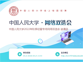 联合举办的“中国人民大学2022年秋季经管专场网络双选会”于9月21日-23日举行。 ...